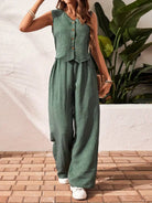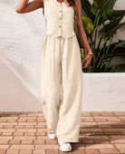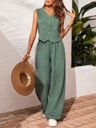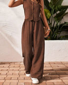 Step into effortless elegance with this two-piece sleeveless set, perfect for both casual outings and relaxed evenings. ✨