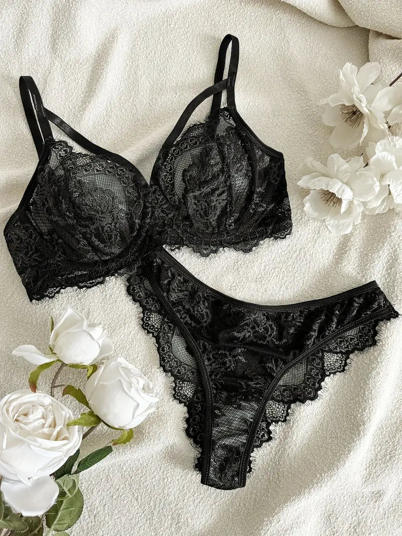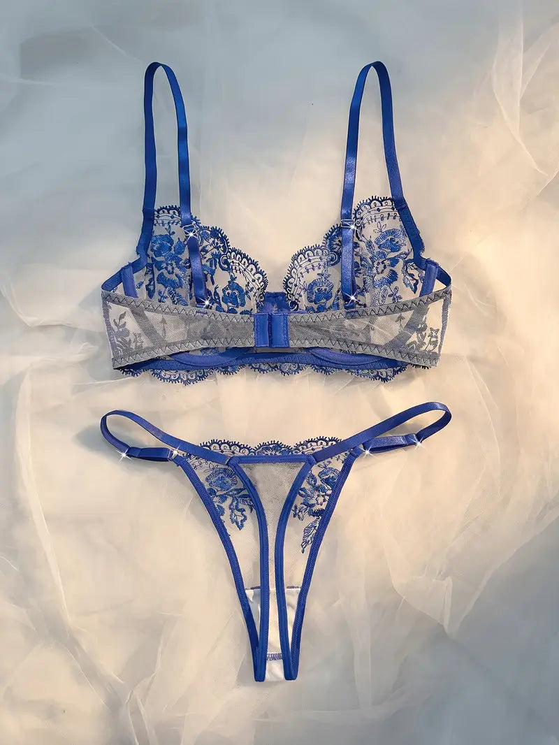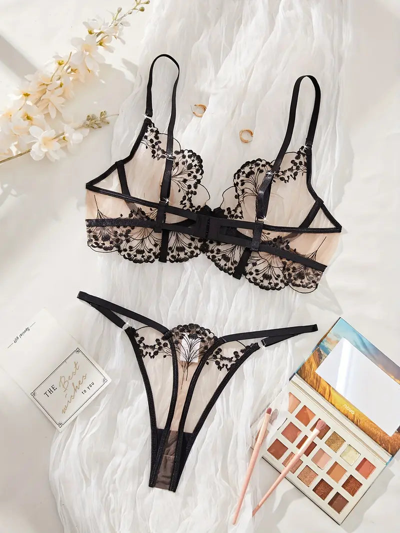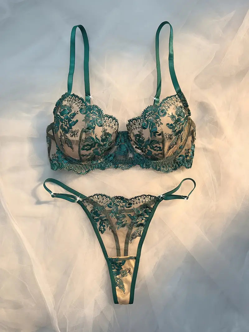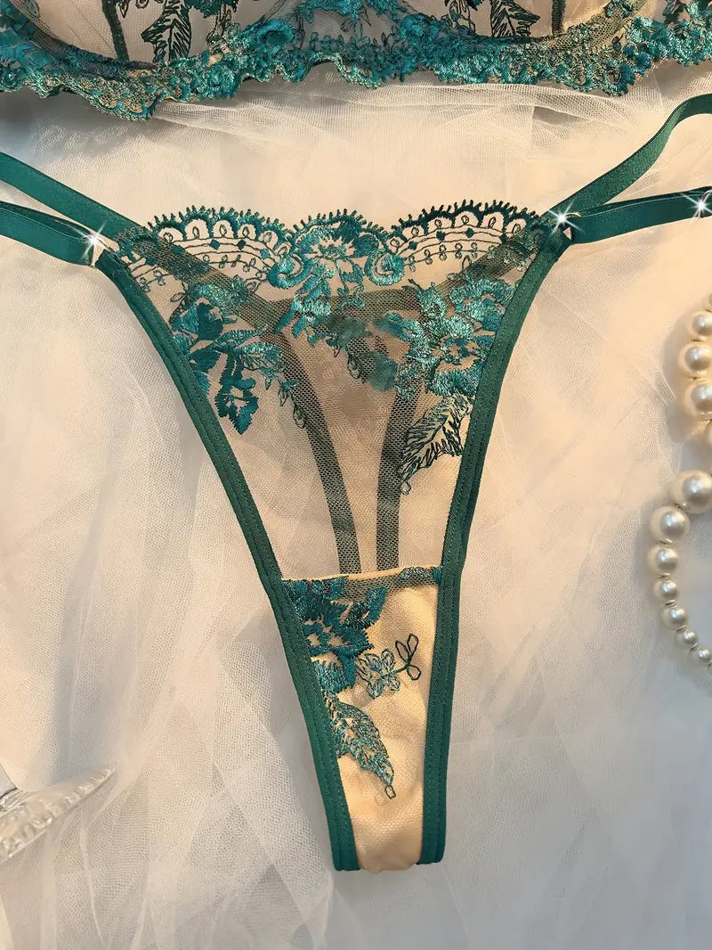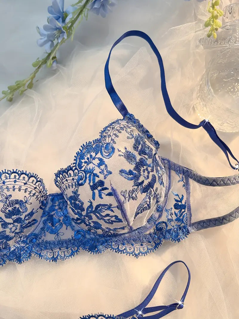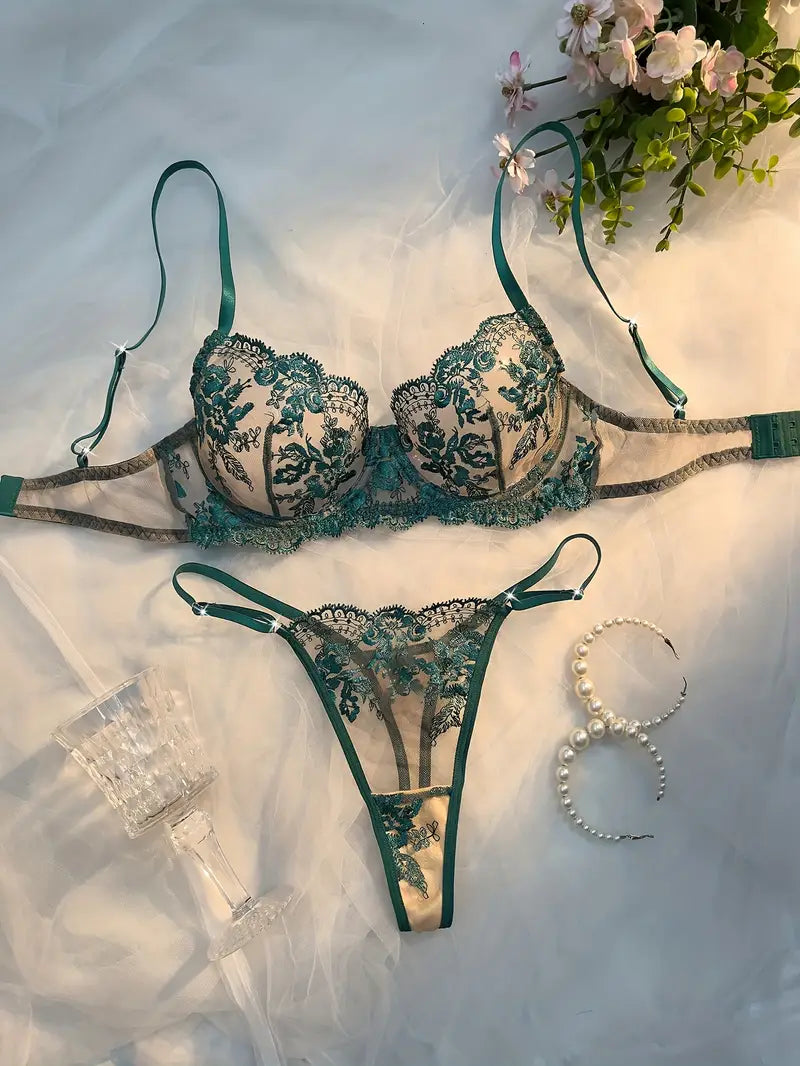 European Style Floral Embroidery Lingerie Set