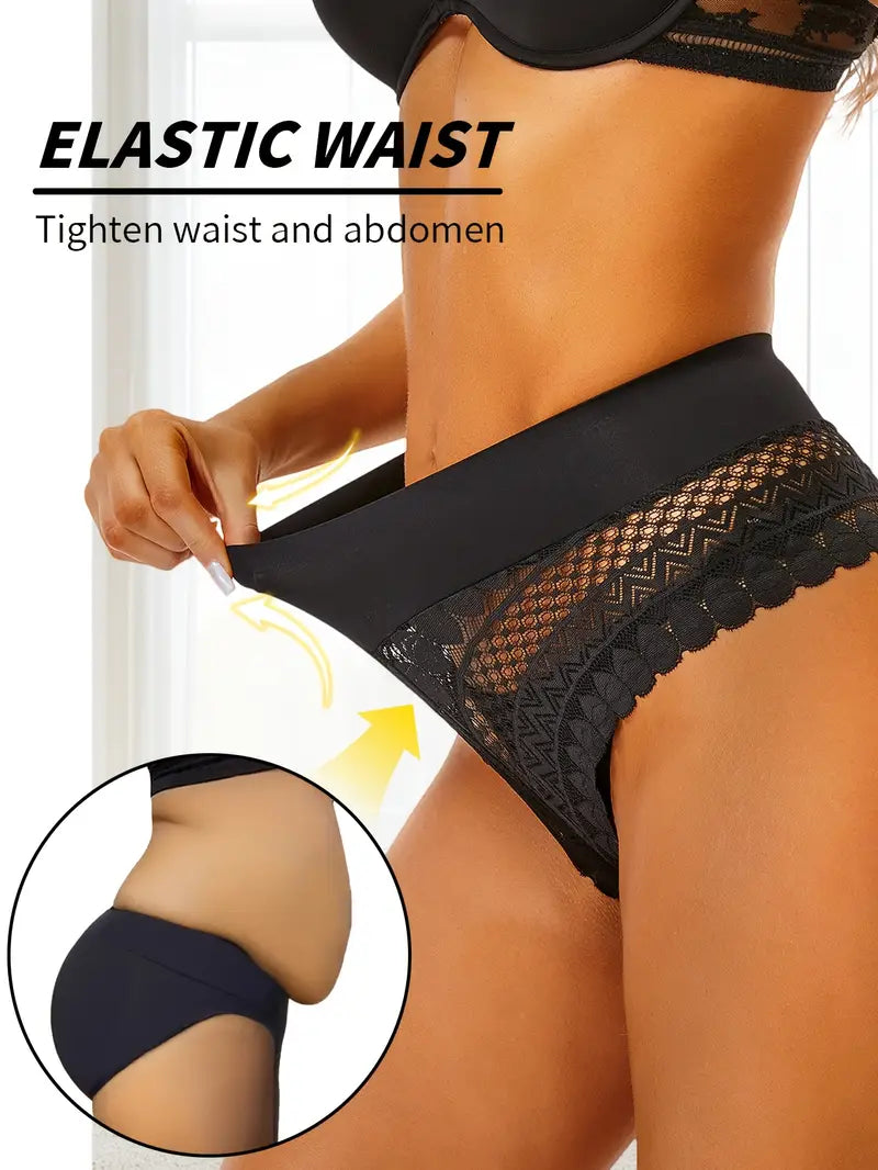 High-Waisted Lace Panties- 3 Pcs